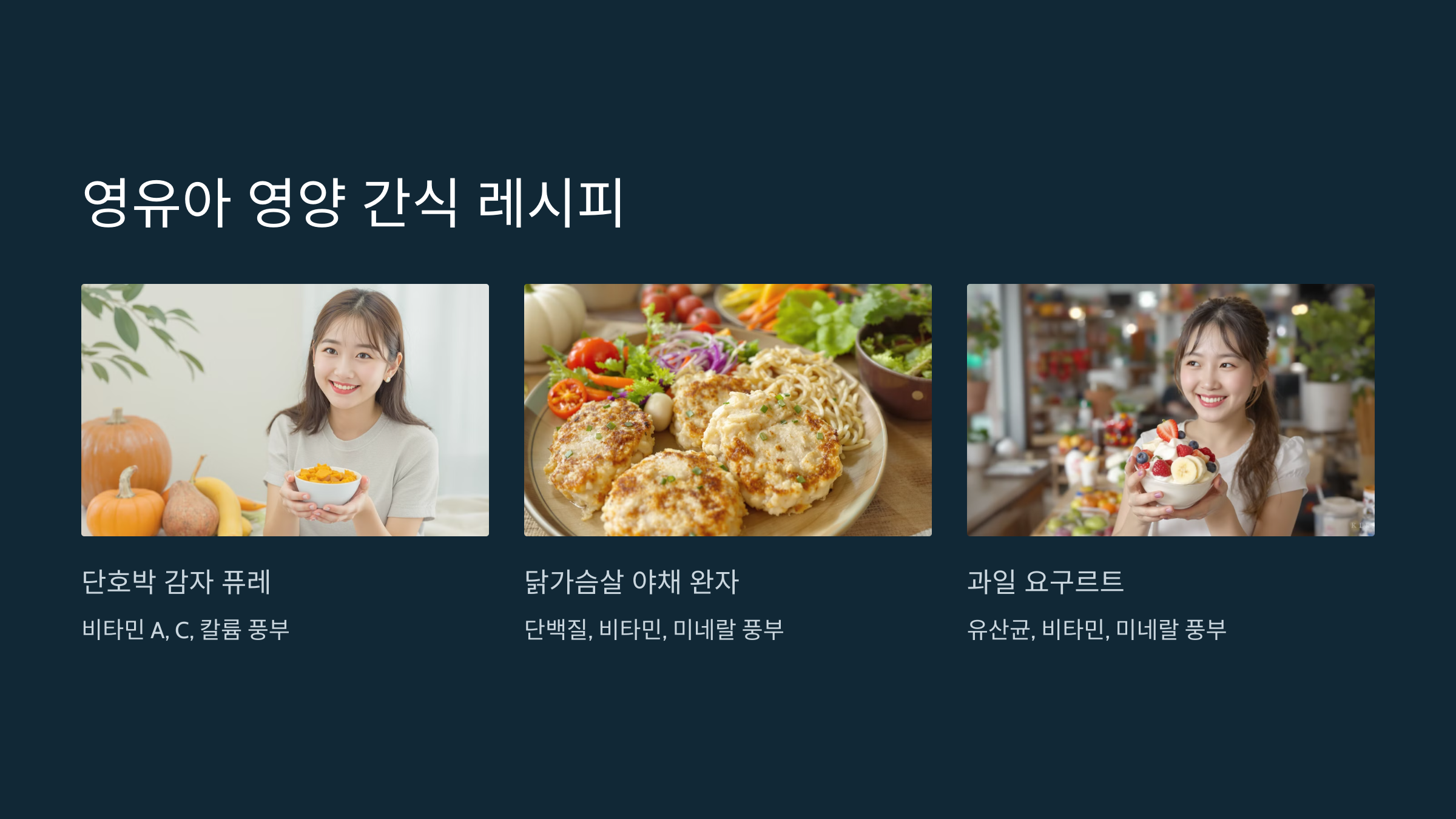 영양플러스 대상 영유아를 위한 맛있고 건강한 간식 레시피를 소개합니다. 집에서 쉽게 만들 수 있으며, 아이의 입맛과 건강을 모두 만족시킬 수 있는 레시피들입니다.